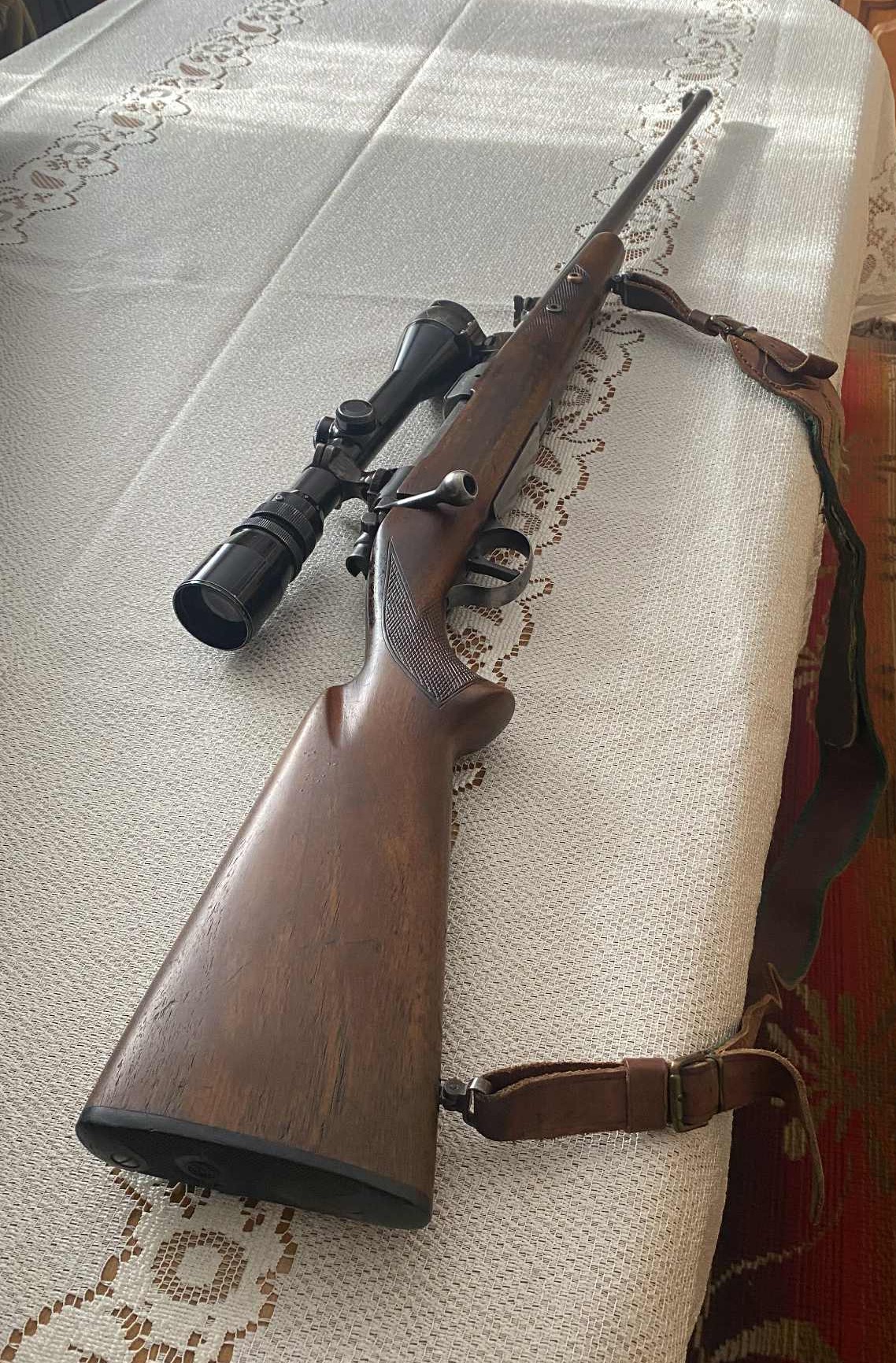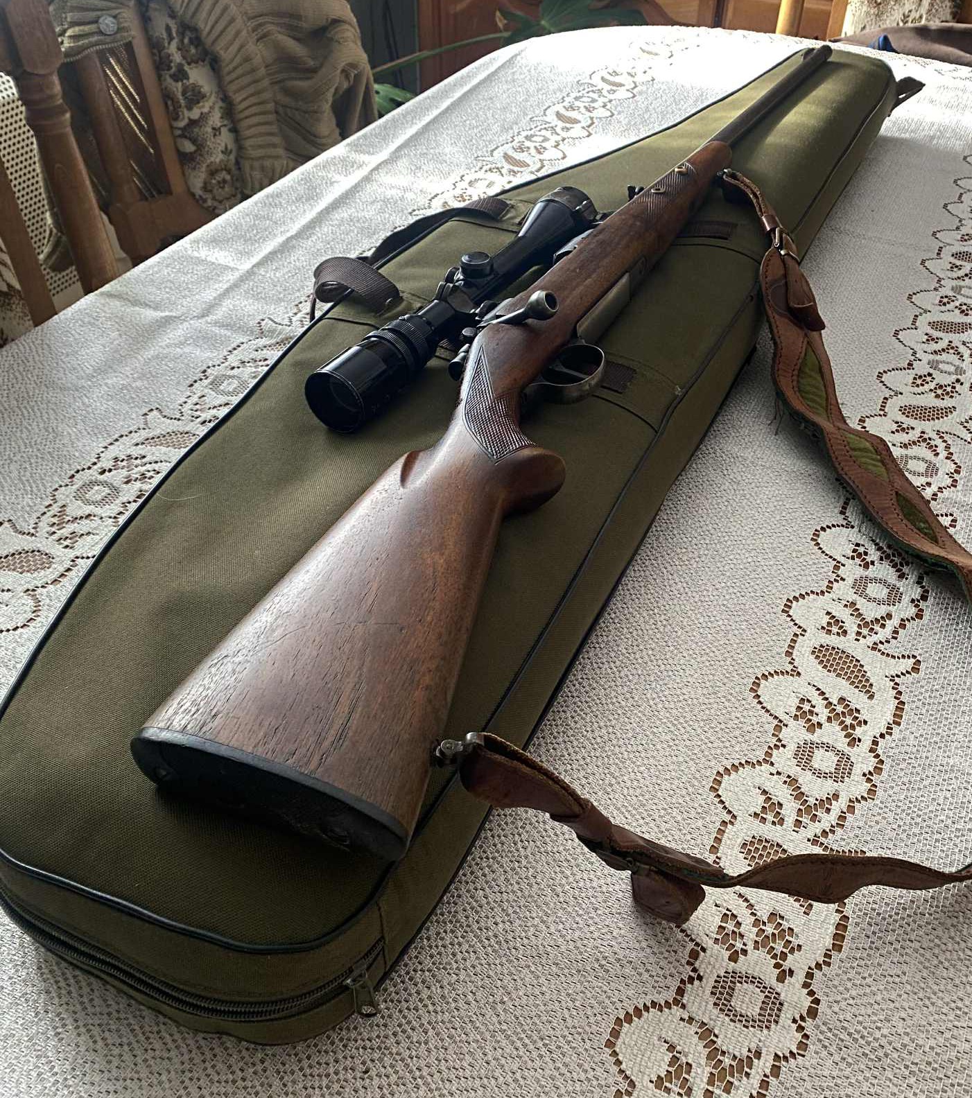 Jó állapotú ZKK 600-as, 30-06 kaliberű golyós fegyver eladó távcsővel, puskatokkal és fegyverszekrénnyel együtt.
